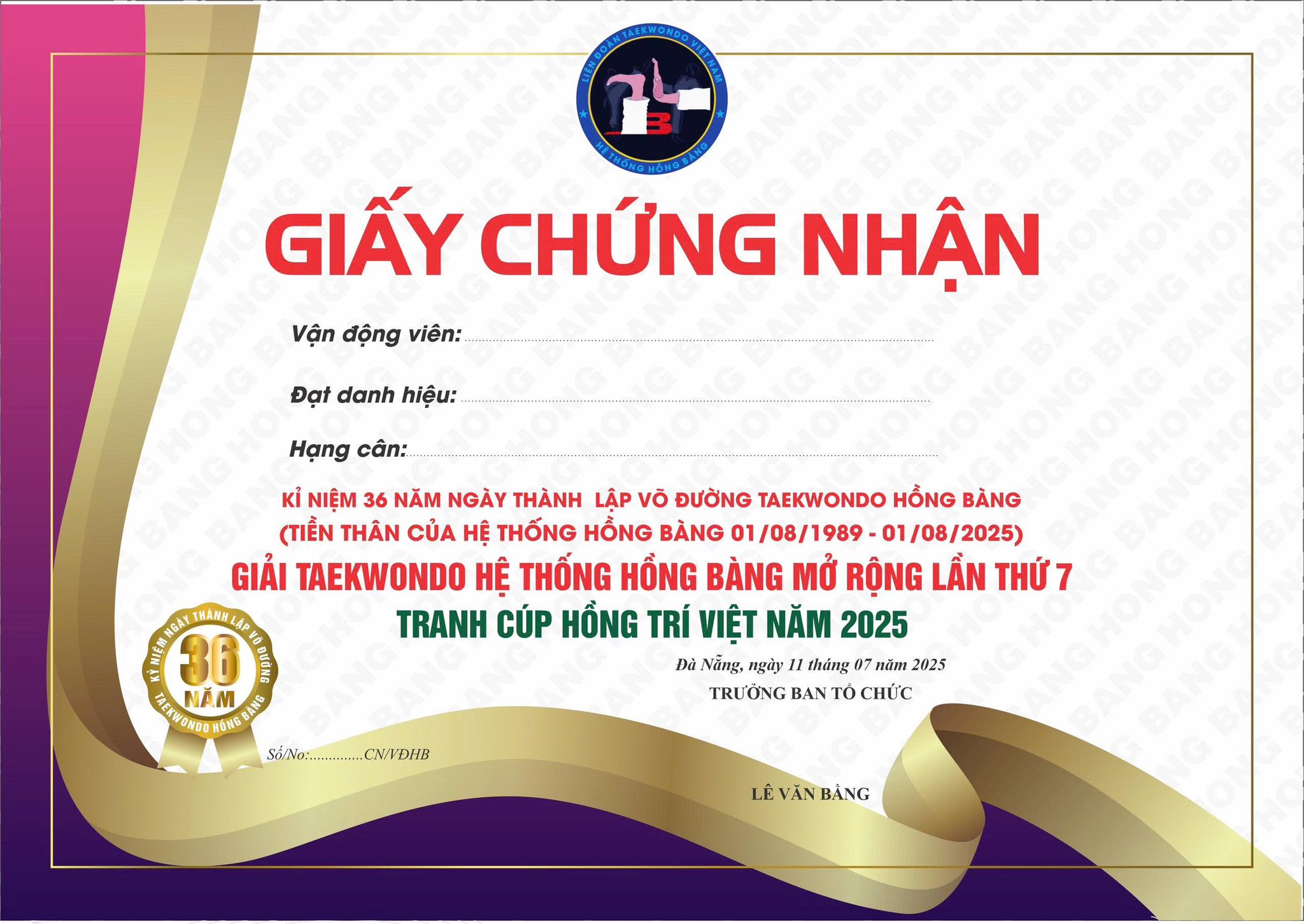 Ban Tổ chức Giải Taekwondo Hệ thống Hồng Bàng mở rộng lần thứ VII – Tranh Cúp Hồng Trí Việt năm 2025 đã hoàn tất các khâu chuẩn bị cho giải đấu diễn ra từ ngày 08 đến 11/7 tại Cung Thể thao Tiên Sơn, TP. Đà Nẵng. Từ cơ sở vật chất, công tác hậu cần, nhân sự điều hành đến việc đảm bảo an ninh, y tế đều đã được triển khai chu đáo. Tinh thần sẵn sàng và quyết tâm của toàn bộ đội ngũ hứa hẹn mang đến một giải đấu chuyên nghiệp, công bằng và hấp dẫn.